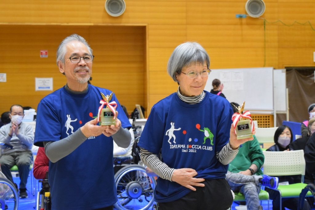 12/15川崎市身体障害者ボッチャ大会、ペア戦に雄二氏と組み、優勝🏆しました!初めて手にするトロフィー🏆は重たかったです。