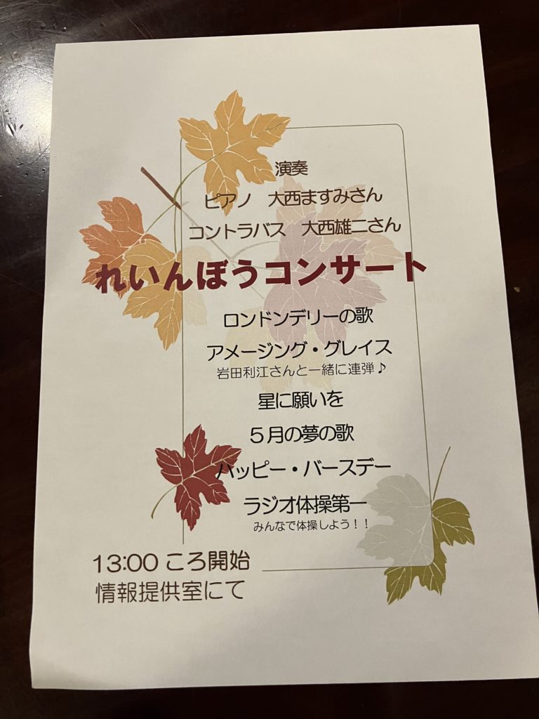 11/23には、れいんぼう川崎で虹の会があり、れいんぼうコンサートをしました。