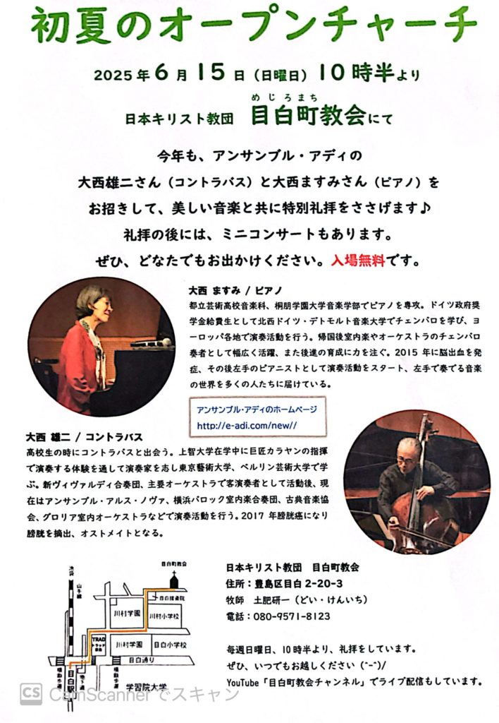 6/15(土)オープンチャーチ、今年も演奏させて頂きます。