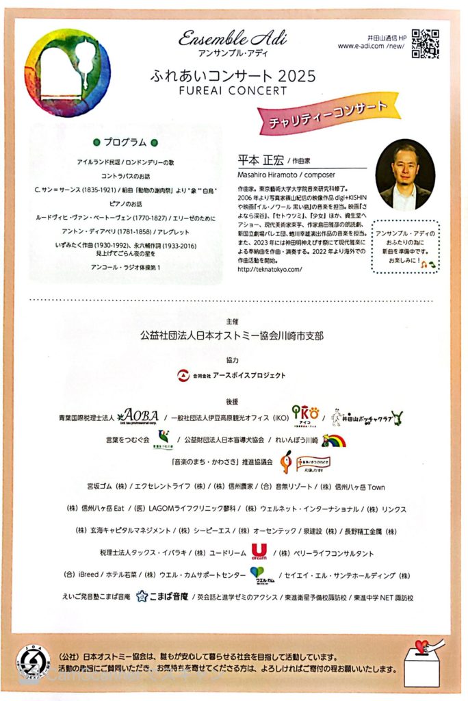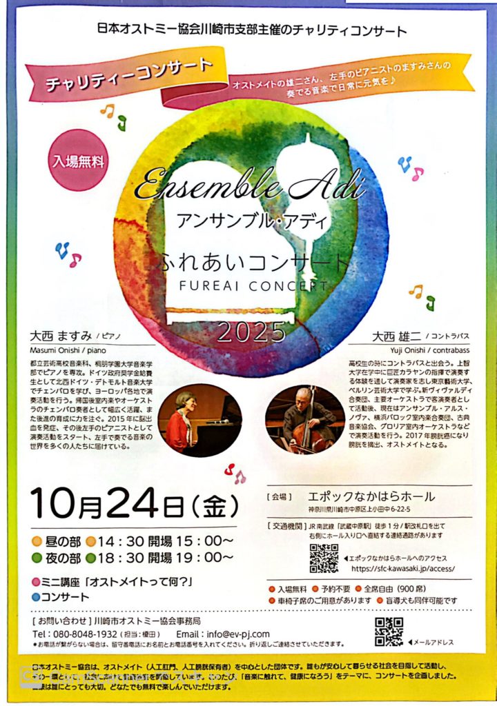 10/24(金)ふれあいコンサート、オストミー協会主催のチャリティーコンサートです。