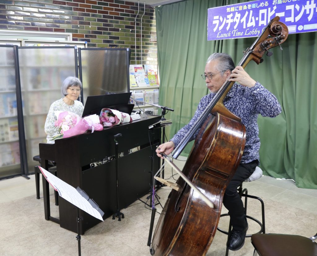日にちは交差しますが、5/15(木)12:10〜12:40@川﨑市生涯学習プラザ1階ロビー、ランチタイム・ロビーコンサートに出演しました。コントラバスの出演は初めてだそう、毎月1回公演は先まで決まっているようで、今回148回目になるそうです。